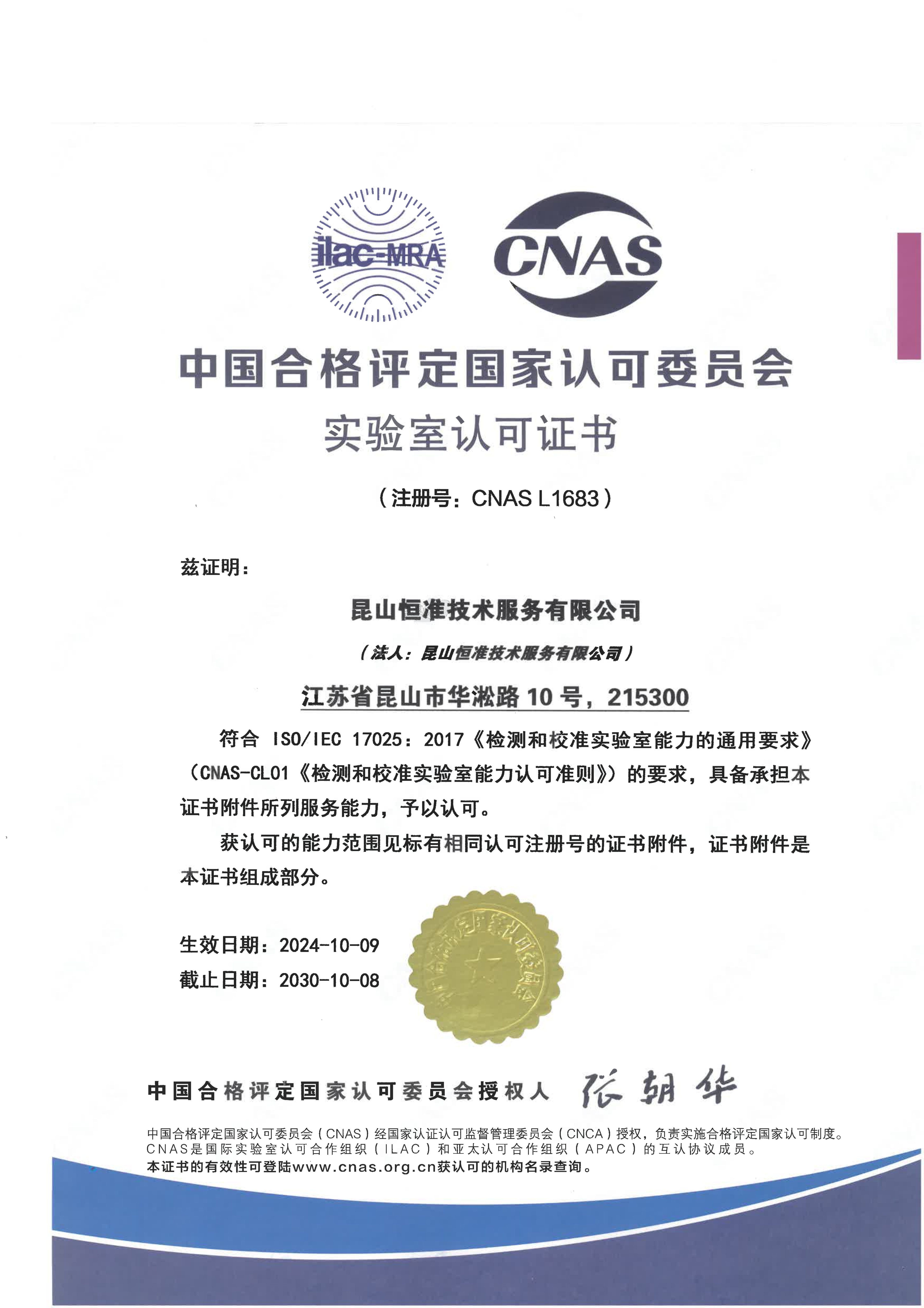 2004年10月,通過中國合格評定國家認可委員會(CNAS)認可(NO.L1683)